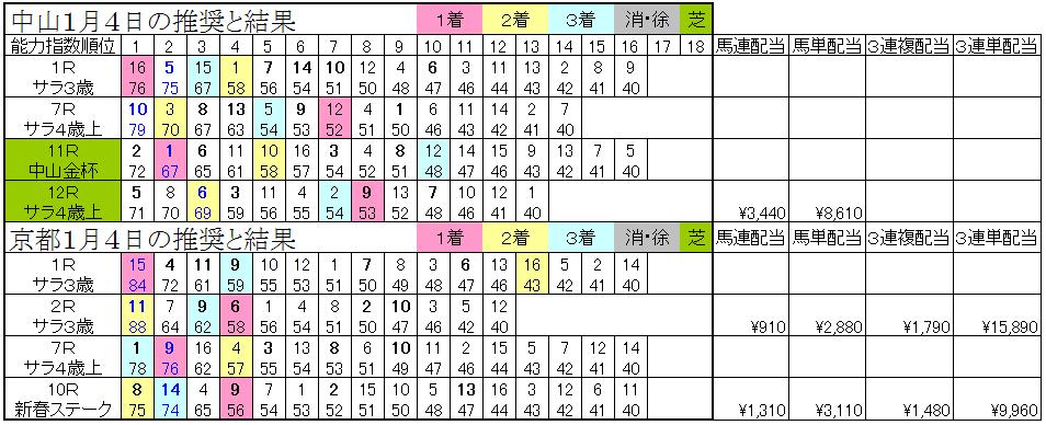 英国式紅茶教室 Blue Lady 紅茶 まくせる 軸馬ください ↑ 上記のタグは話題の単語とお友達のHPとブログなどです。決してそれをクリックし誘導するものではありません。宜しく応援お願いします。 こんばんは。コンピでGooの管理人ukato conpiです。 今週の私の推奨馬結果報告をします。 皆さんの今年初めての競馬はいかがでしたか。私の的中推奨は3レースでした。不覚レースを3レースを出しました。今週はデータが無いため昨年のデータを基に推奨でしたから、心苦しく推奨など出来ないはずでしたがお知らせしたら多くの方の来訪があり嬉しく申し訳なく思いました。 また、別ブログ軸馬くださいを立ち上げ皆様からの軸馬を募集しています。一度お立ち寄りくださいまして、次回の競馬に軸馬をいただきたいですね。今週の軸馬がもし当たれば55%で的中できましたね。目標から遠ざかりました。 推奨した馬番号に太字で記しています。既にお気付きでしょうが微かに青い文字が映し出されていると思います。これは日刊コンピが推奨した馬番号です。 着順は色を見ていだければ分かると思います。 それでは早速日毎に見て行きます。 4日は、中山12Rで的中推奨が出来、また京都では2・10Rで3着まで入りました。何れも配当が低く喜んではいただけなかったと思います。残念ながら中山2レースで不覚を出しました。 5日は的中推奨が無く中山の1レースで不覚を出しました。また、京都6Rで推奨馬の除外がありました。 この結果に懲りず、今後ともこのブログ、別ブログ軸馬くださいをよろしくお願いします。 これからも拍手ボタン&ランキングの応援お願いします。