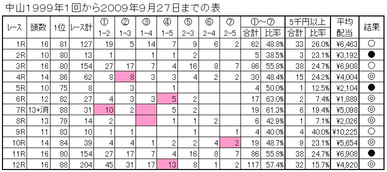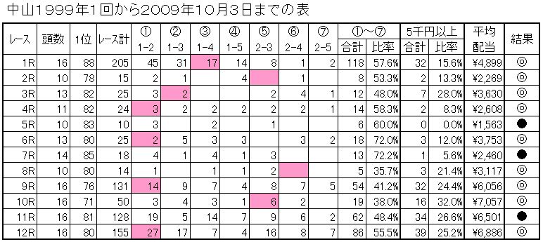 英国紅茶教室 Blue Lady 紅茶 軸馬ください ケイキ ![]() これからも拍手ボタン& ![]() また、 ![]() こんにちは。コンピでGooの管理人ukato_conpiです。 3・4日のくだらないデータ結果を報告いたします。 表の見方は、◎が①~⑦を○は5千円以上、●はそれ以外をあらわします。 また、表の中のピンク色は◎の結果を解りやすくするため色を付けました。 3日の結果は、◎が6レース、○が3レース、●が3レースでした。データ通りになり嬉しく思っています。これこそがデータ競馬ですね。 4日の結果は、◎が9レース、○が0レース、●が3レースでした。この日は堅く収まりデータ競馬には相応しくない結果でした。日刊コンピ指数の1-2番目で決まられてはデータ競馬もお手上げですね。 下記の結果データで次回の競馬にお役立てください。次回もデータを掲載します。 PR