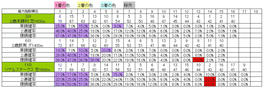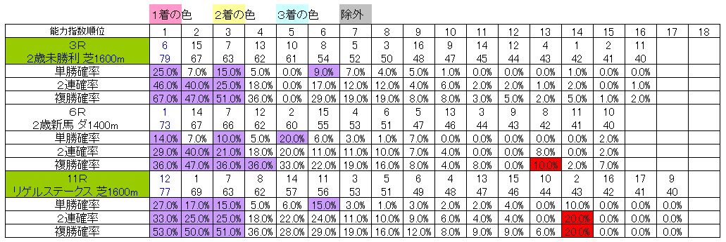 各確率上位3頭には紫の色をつけています。また、穴になるなら下位に付けた赤色が気になりますね。