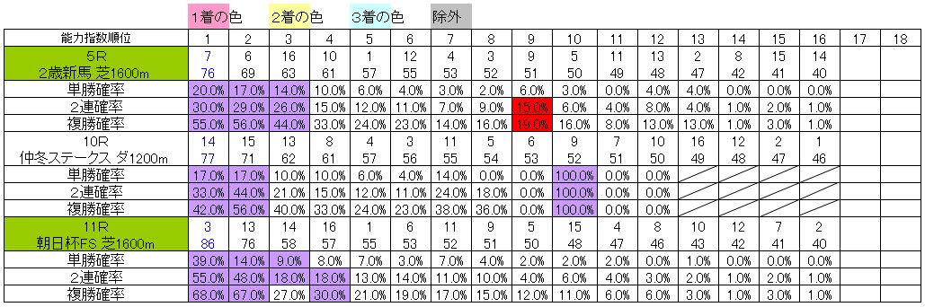本日は朝日杯FSが行われますので中山の的中確率データです。