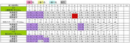 今日の的中確率で10Rを注目すれば10番目の52に紫の印があります。100%になっているので驚かれましたでしょう。