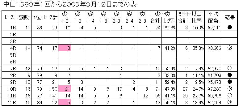 英国紅茶教室 Blue Lady 紅茶 軸馬ください ケイキ 上記のタグは話題の単語とお友達のHPとブログなどです。決してそれをクリックし誘導するものではありません。宜しく応援お願いします。これからも拍手ボタン& また、 への応援もお願いします。こんにちは。コンピでGooの管理人ukato_conpiです。 12・13日のくだらないデータ結果を報告いたします。 表の見方は、◎が①~⑦を○は5千円以上、●はそれ以外をあらわします。 また、表の中のピンク色は◎の結果を解りやすくするため色を付けました。 12日の結果は、◎が6レース、○が2レース、●が2レースでした。この日は8頭立て以下レースが2レースあり、少頭数で面白みがなかったですね。 13日の結果は、◎が3レース、○が2レース、●が3レースでした。この日もデータ数が少なく前の日よりもまた8頭立てレースが多くなり難しいレースとなりました。昨日も書き込みましたがなんと言っても67万馬券が光りますね。 下記の結果データで次回の競馬にお役立てください。次回もデータを掲載します。 PR