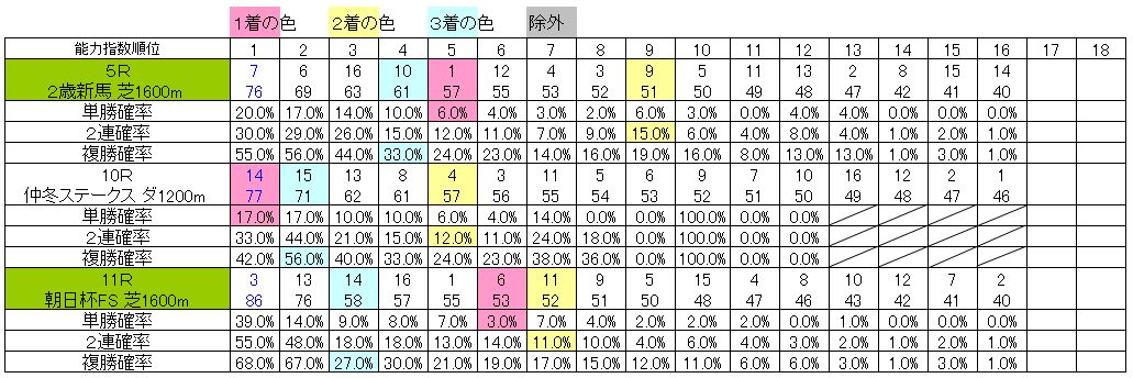 報告忘れていましたが画像の中で斜線があります。その斜線は指数順位では出現していないことです。確率0%とは違います。
