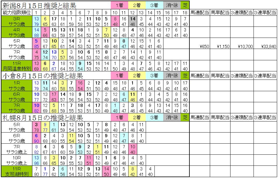 15日は新潟5Rで的中推奨が出来ました。不覚は新潟と札幌で3レースを出し新潟の1レースで場外馬が出てそれをあわせると4レースの不覚となります。