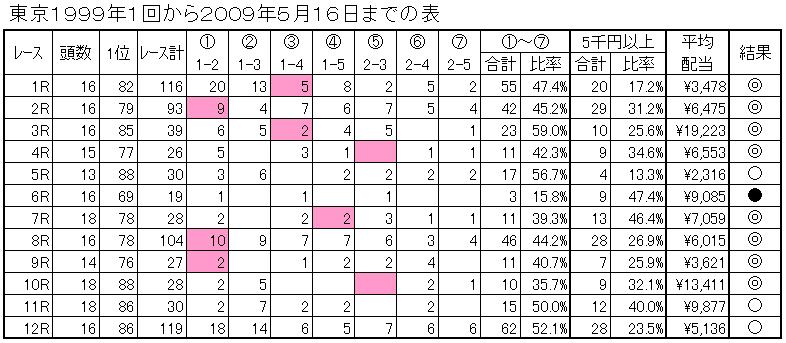 | 英国紅茶教室 Blue Lady 紅茶 軸馬ください ケイキ   上記のタグは話題の単語とお友達のHPとブログなどです。決してそれをクリックし誘導するものではありません。宜しく応援お願いします。 こんばんは。コンピでGooの管理人ukato_conpiです。 16・17日のくだらないデータ結果を報告いたします。 表の見方は、◎が①~⑦を○は5千円以上、●はそれ以外をあらわします。 また、表の中のピンク色は◎の結果を解りやすくするため色を付けました。 16日の結果は、◎が8レース、○が3レース、●が1レースでした。堅く収まったレース以外に万馬券が3本飛び出し狙いを定めた方は喜び一入でしたね。近頃データ数が少ないレースでどれくらい消化したレースを基準にするか見極めが難しいですね。 17日の結果は、◎が8レース、○が3レース、●が1レースでした。この日も前日同様の結果でしたが万馬券はなく5千円~1万円の範囲になりました。 今週も先週同様指数1位の時の結果を付け加えましたがこのまま続けたらいいものでしょうかね。皆さんの意見を頂きたいです。もしコメントがなければ来週は書き込みません。 下記の結果データで次回の競馬にお役立てください。次回もデータを掲載します。 これからも拍手ボタン&ランキングの応援お願いします。 また、ブログランキングセンターへの応援もお願いします。 PR