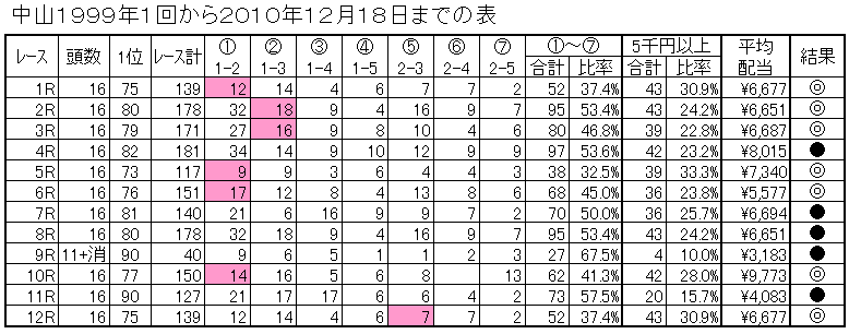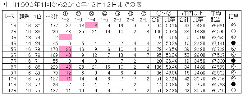 英国式紅茶教室 Blue Lady 軸馬ください ケイキ また、 ![]() ![]() こんにちは。コンピでGooの管理人ukato_conpiです。 18・19日のくだらないデータ結果を報告いたします。 初日はJRAの思惑通りの結果になりました。しかし、大穴党には物足りなさもありましたでしょうか。1万円を超えなかったです。2日目は平凡で難しい競馬になりましたね。 それでは下の結果を参考にされ次回に役立ててください。 表の見方は、◎が①~⑦を○は5千円以上、●はそれ以外をあらわします。 また、表の中のピンク色は◎の結果を解りやすくするため色を付けました。 18日の結果は、◎が7レース、○が2レース、●が3レースでした。 順当な結果になりました。配当を見れば物足りなさを感じました。データ通りに荒れたのは12Rだけでした。その他は難しかったですね。 19日の結果は、◎が7レース、○が0レース、●が5レースでした。 この日は5千円以上の配当レースはなく難しい一日となりました。頭数が揃ってデータも揃いましたが結果は●の多さが目立つ配当となりました。データ競馬泣かせの一日でした。 何度も書き込んでいますが次週は今年最後の週となります。50万円以上の配当を仕留め良い年を迎えられるようデータで競馬を楽しみましょう。 下記の結果データで次回の競馬にお役立てください。次回もデータを掲載します。 下の拍手をお願いします。同じ方が別のPCから訪れてもこちらでは確認出来ます。やむなく訪問を制限いたしております。私が意地悪している訳ではありません。皆さんの信頼性を尋ねているからです。 一つの非クリックが100万馬券を逃すのでしょう。また、土・日には500円を捨てなくても済むのですがね。あのファイルが◯◯です。 また、パスワードを書き込んでいますがこのパスワードをお控え願います。金曜日と土曜日の20時頃から使うようになります。よろしくお願いします。 →パスワードはhohohoです。 PR