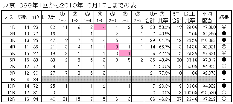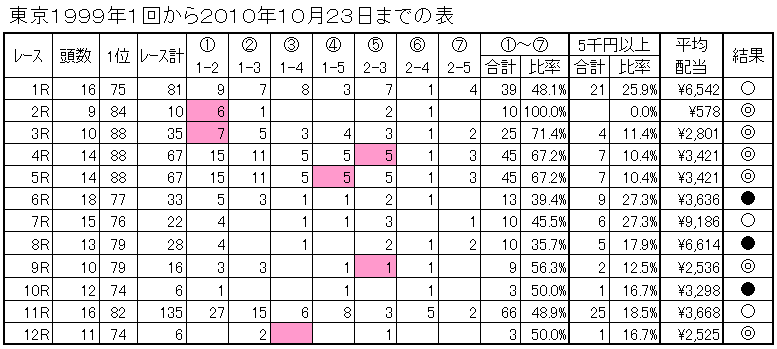 英国式紅茶教室 Blue Lady 軸馬ください ケイキ また、 ![]() への応援もお願いします。このお願いはご訪問された方に告ぐものです。この応援があればこそ励みになります。どうぞよろしくお願いします。近頃皆様の応援を受け上位にランクされています。嬉しいです。こんにちは。コンピでGooの管理人ukato_conpiです。 23・24日のくだらないデータ結果を報告いたします。 表の見方は、◎が①~⑦を○は5千円以上、●はそれ以外をあらわします。 また、表の中のピンク色は◎の結果を解りやすくするため色を付けました。 23日の結果は、◎が3レース、○が3レース、●が6レースでした。 ●が多いということは難しい競馬になりました。堅く収まるわけでもなくそれでいて荒れるわけでもない訳ですからね。コンピ指数泣かせの結果でした。 24日の結果は、◎が6レース、○が3レース、●が3レースでした。 この日の結果はコンピ指数に置いて順当な出来事ですね。この様な結果こそデータ競馬になるのじゃないですか。1Rは比較的簡単にとれましたね。意外だったのは11Rです。平均配当が低いのに高配当になりました。考えようによっては難しくもあり簡単でもあったということでしょうか。 下記の結果データで次回の競馬にお役立てください。次回もデータを掲載します。 下の拍手をお願いします。同じ方が別のPCから訪れてもこちらでは確認出来ます。やむなく訪問を制限いたしております。私が意地悪しているわけではありません。皆さんの信頼性を尋ねているからです。 ちなみに不幸にも入室を断れた方は延べ人数で470人を超えました。一つの非クリックが100万馬券を逃すのでしょう。また、土・日には500円を捨てなくても済むのですがね。あのファイルが◯◯です。 また、パスワードを書き込んでいますがこのパスワードをお控え願います。金曜日の20時頃と土曜日の20時頃から使うようになります。よろしくお願いします。 →パスワードはhohohoです。 PR