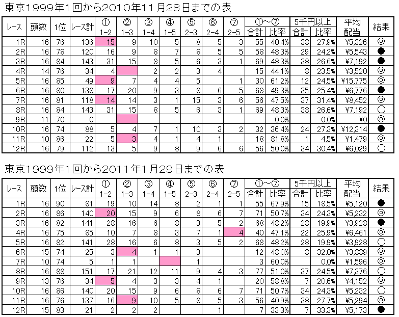 英国式紅茶教室 Blue Lady 軸馬ください ケイキ また、 ![]() への応援もお願いします。このお願いはご訪問された方に告ぐものです。この応援があればこそ励みになります。どうぞよろしくお願いします。近頃皆様の応援を受け上位にランクされています。嬉しいです。こんにちは。コンピでGooの管理人ukato_conpiです。 29・30日の結果を報告します。 東京の初めての競馬でしたが難しくもあり無難に取れたところもありましてね。教訓として開催初めは指数1番目が良いということでした。始まる前は気づいていますがいざ当日を迎えるとすっかり忘れ穴狙いに走るのはどうしてでしょうかね。 それでは下の結果を参考にされ次回に役立ててください。 表の見方は、◎が①~⑦を○は5千円以上、●はそれ以外をあらわします。 また、表の中のピンク色は◎の結果を解りやすくするため色を付けました。 29日の結果は、◎が6レース、○が2レース、●が4レースでした。 近頃の競馬結果は◎が6止まりの傾向が続いています。そしてその分●が多くなるのですね。私のデータからすると●が増えるとお手上げです。困りますね。 30日の結果は、◎が6レース、○が3レース、●が3レースでした。 この日は前日と殆とかわりなく荒れたレースがひとつ増えました。これだとデータの威力を発揮します。競馬で上手な方はデータなどいらなくても取れるので感心いたします。私は新聞などはなくデータだけですから競馬が上手になれません。それでも勝利出来ればいいと思っています。楽しむ競馬じゃなく勝利する競馬ですからね。 下記の結果データで次回の競馬にお役立てください。次回もデータを掲載します。 下の拍手をお願いします。拍手のない方はやむなく訪問を制限いたしております。私が意地悪している訳ではありません。皆さんの信頼性を尋ねているからです。 一つの非クリックが100万馬券を逃すのでしょう。また、土・日には500円を捨てなくても済むのですがね。あのファイルが◯◯です。 また、パスワードを書き込んでいますがこのパスワードをお控え願います。20時頃から使うようになります。よろしくお願いします。 →パスワードはhohohoです。 PR