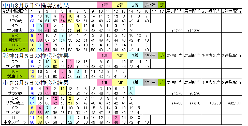 5日は、中山4R、小倉2・6Rで的中推奨がありました。小倉6Rは3頭入ってくれたので良かったのです。この日も不覚を報告するのが辛いですが阪神と小倉で各1レースずつありました。このまま不覚が続くようでは推奨をお休みも考えなければならなくなりますかね。