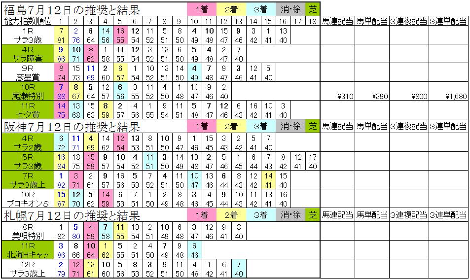 は福島6R、札幌10・12Rで的中推奨が出来ました。的中は低配当でしたが不覚を出さないことで満足でした。いつもこうだと鼻高々でいられるのです。しかし、次の日が上手く行きませんでした。