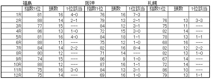明日の福島・阪神・札幌のくだらないデータをお伝えします。
