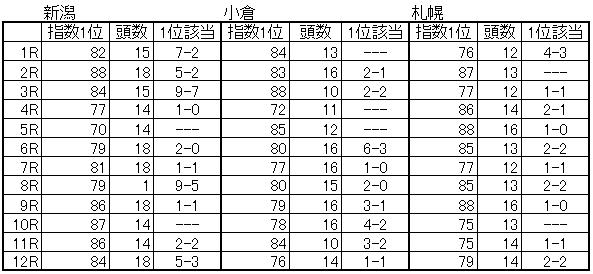 明日の新潟・小倉・札幌のくだらないデータをお知らせします。
