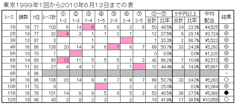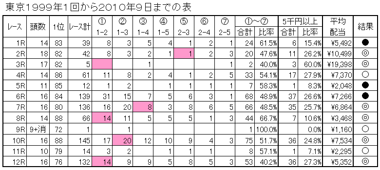 英国式紅茶教室 Blue Lady 軸馬ください ケイキ また、 ![]() への応援もお願いします。このお願いはご訪問された方に告ぐものです。この応援があればこそ励みになります。どうぞよろしくお願いします。近頃皆様の応援を受け上位にランクされるようになって来ました。嬉しいです。こんにちは。コンピでGooの管理人ukato_conpiです。 9・10日のくだらないデータ結果を報告いたします。 表の見方は、◎が①~⑦を○は5千円以上、●はそれ以外をあらわします。 また、表の中のピンク色は◎の結果を解りやすくするため色を付けました。 9日の結果は、◎が8レース、○が2レース、●が1レースでした。 データ通りの結果に終わりましたね。これは今年の傾向から占うことが出来ました。2Rは万馬券をねらえ。10・12Rは5千円以上を狙えです。 10日の結果は、◎が6レース、○が3レース、●が3レースでした。 前日と変わり●が増えたことで難しい競馬になりました。中穴狙いの方の日となりました。競馬を仕留めるには何がいいのかわからなくなる時があります。それでも捕獲できる方は上手なのでしょうね。 下記の結果データで次回の競馬にお役立てください。次回もデータを掲載します。 下の拍手をお願いします。同じ方が別のPCから訪れてもこちらでは確認出来ます。やむなく訪問を制限いたしております。私が意地悪しているわけではありません。皆さんの信頼性を尋ねているからです。 ちなみに不幸にも入室を断れた方は延べ人数で450人を超えました。一つの非クリックが100万馬券を逃すのでしょう。500円を捨てなくても済むのですがね。 また、パスワードを書き込んでいますがこのパスワードをお控え願います。金曜日の20時頃と土曜日の20時頃から使うようになります。よろしくお願いします。 →パスワードはhohohoです。 PR