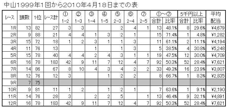 下のくだらないデータのグレー表示は8頭立て以下のためデータがございません。
