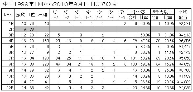 下のくだらないデータのグレー表示は8頭立て以下のためデータがございません。