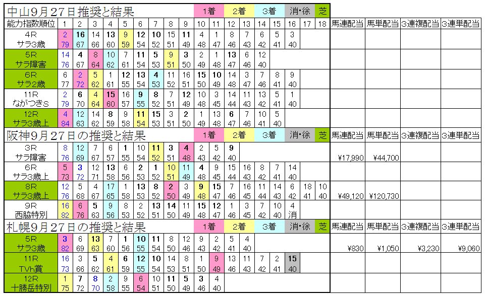 27日は、阪神3・8Rの的中推奨と札幌5Rで低配当の的中推奨がありました。残念ながら中山5R、阪神6・9R、札幌12Rで不覚を出しました。的中推奨の中で阪神の8Rは12万馬券になりましたので許してもらえますでしょうね。不覚レースを出すことは本当に心苦しいです。