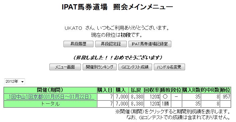 Blue Lady 紅茶教室 軸馬ください おーいおい 上記のタグは話題の単語とお友達のHPとブログなどです。決してそれをクリックし誘導するものではありません。宜しく応援お願いします。 これからも下左の拍手ボタンとの応援お願いします。 また、への応援もお願いします。このお願いは競馬をされている方に告ぐものです。この応援があればこそ励みになるものです。どうぞよろしくお願いします。近頃皆様の応援を受け上位にランクされるようになって来ました。嬉しいです。 全国日刊コンピ指数ファンの皆様、おはようございます。 本日は前記事で紹介した馬券道場の記録をご紹介です。 本認定証が出るまで時間があるので自慢として掲載します。この下手くそ私でも1回で初段をクリアしたのですから皆さんも取れます是非2回目の昇段試験を受験してください。受験などと書くとおかしいですね。 次は8日間開催になりますので単勝・複勝のいずれかで8000円の配当があればクリアです。チャレンジしてください。 下の画像が目録のような記録の紹介です。 皆さんの拍手をお待ちします。 下の拍手をいただかない方はご訪問を制限いたします。 追記:認定証が届いていましたことをお知らせします。 認定証は右プロフィールに掲載しました。(16:45分)